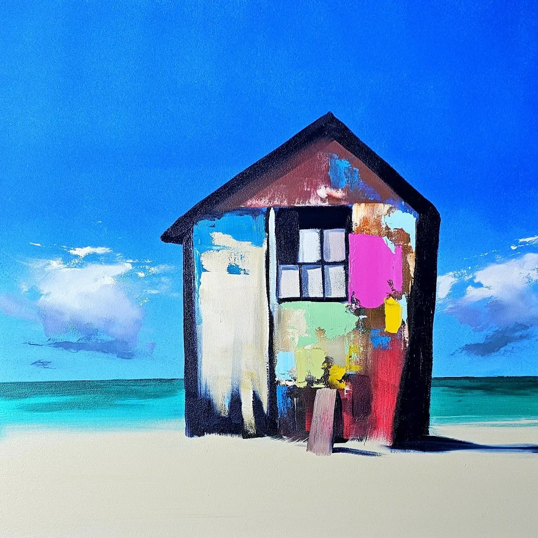 This is from a series of paintings entitled Jim's Odyessey and is on the theme of a middle aged man's crisis. His desire to be remembered as he approaches old age. The series of paintings depict fantastical adventures, imagined by the man to give himself a sense of worth and excitement.