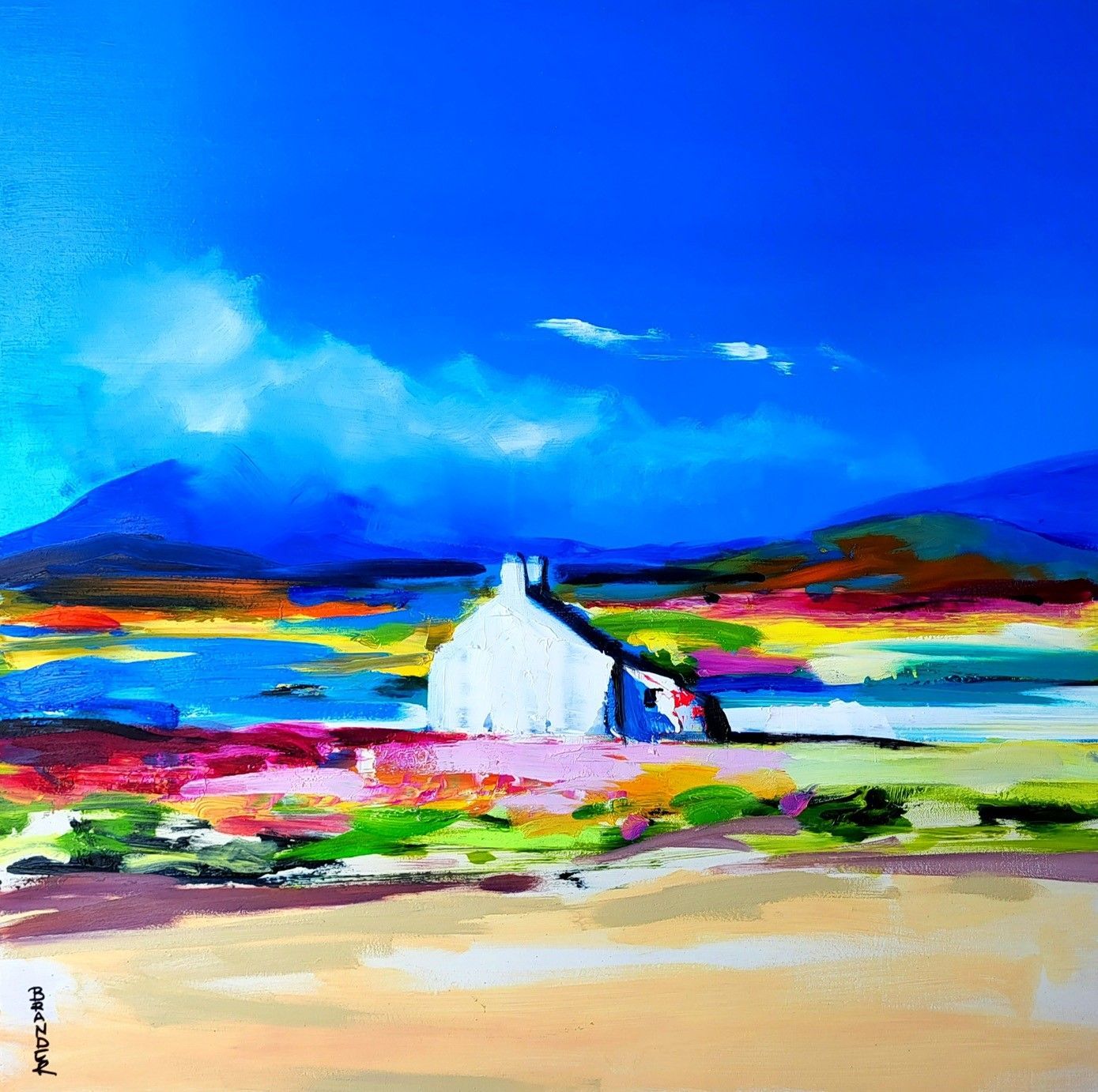He studied at GSA (2007-11) in a period when ‘conceptual art’ (the Turner Prize) dominated. Brander has cleverly managed to incorporate some of the lessons and progression of ‘conceptual art’ into his landscapes creating a huge adjustment and step-forward into modern-relevant paintings that meet current art appetites and thinking.