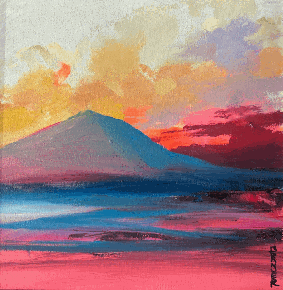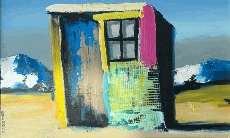 His style is expressionist (high-key palette), layered on top of his deeper conceptual messages. Brander is greatly affected by the world that he lives in and he will (subtly) thread these issues through his artistic expression.