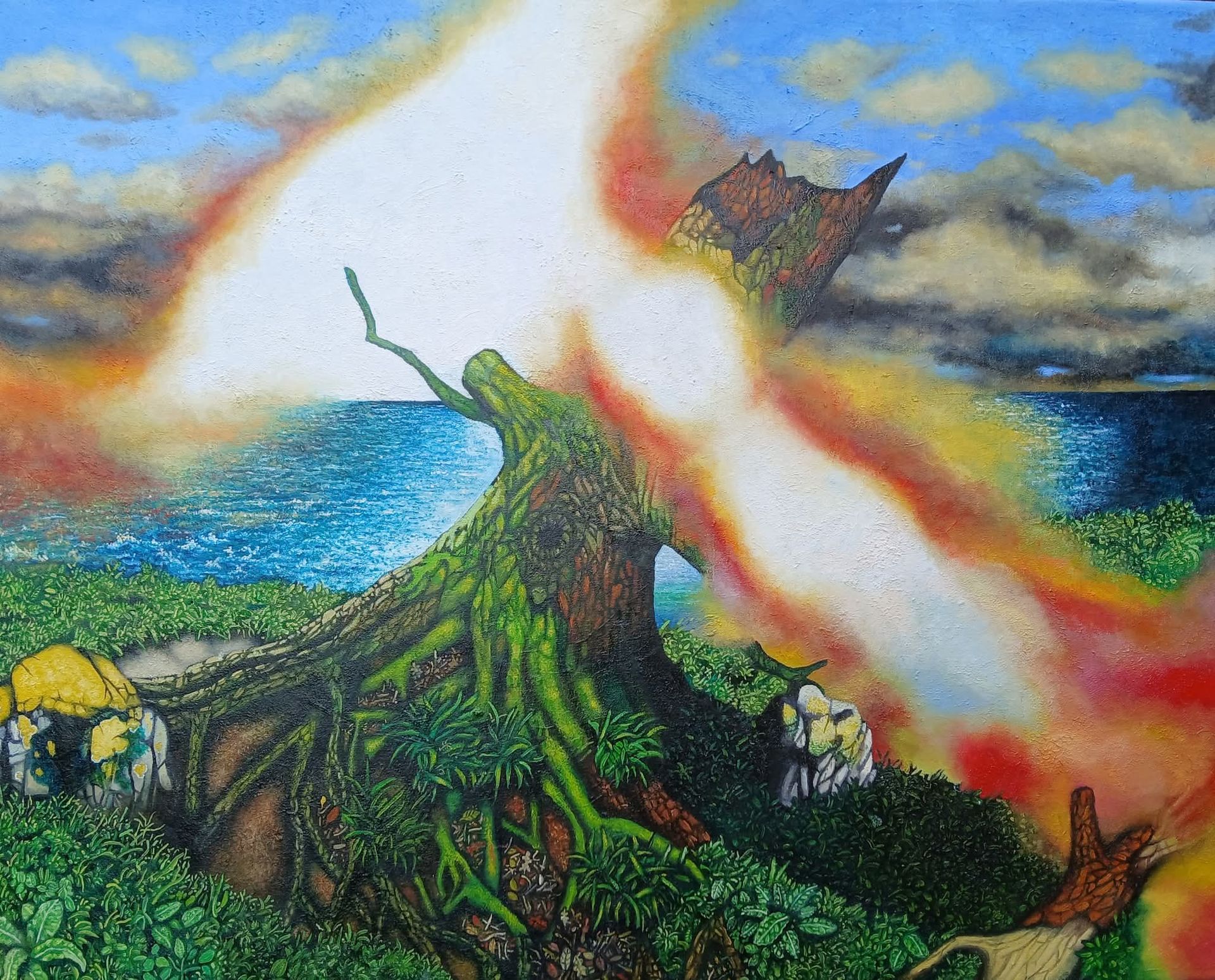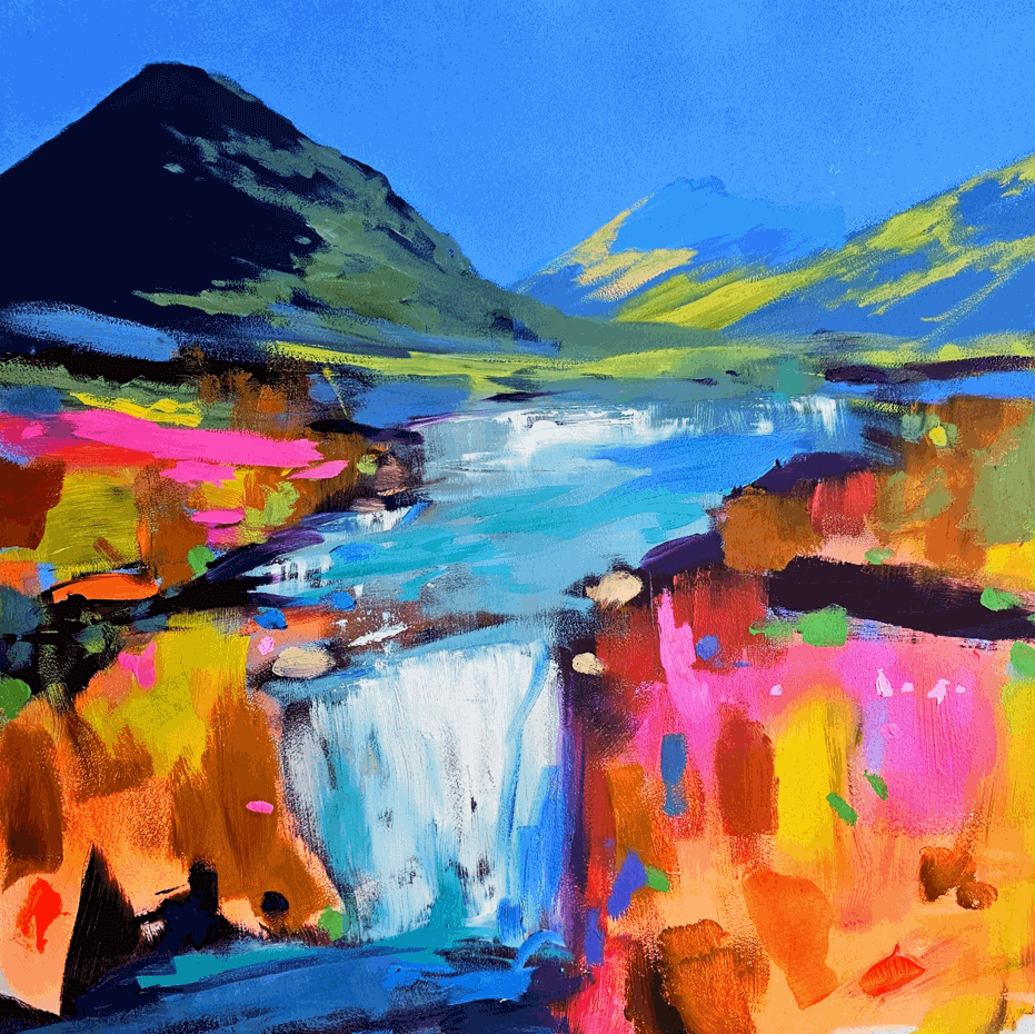Both paintings are inspired from the powerful energy that we all possess within us even when we leave this world. This energy can be felt around us. When we suffer loss either in the passing of those close to us or even the loss of a love we still feel this energy in the everyday. The lights represent these energies in the environments we hold close connections to. I particularly feel these energies amongst the trees, the loch, the sea, places where I frequent and hold dear.