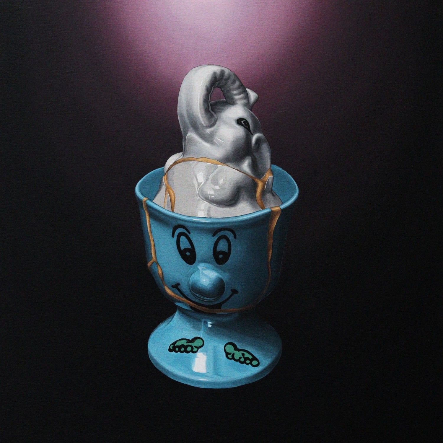 Kintsugi is the 500-year-old Japanese tradition of embracing imperfections. It represents the art of repairing broken pottery with lacquer dusted or mixed with powdered gold. The repair is celebrated (rather than hidden), promoting their philosophy of ‘being calm’ when a cherished piece of pottery breaks. Rather than discarding the broken object (wastefully) they elevate the repair with gold to reinforce the act of reinstatement. It is also designed to act as a (parallel) prompt to us about our need to similarly respect human fragility.