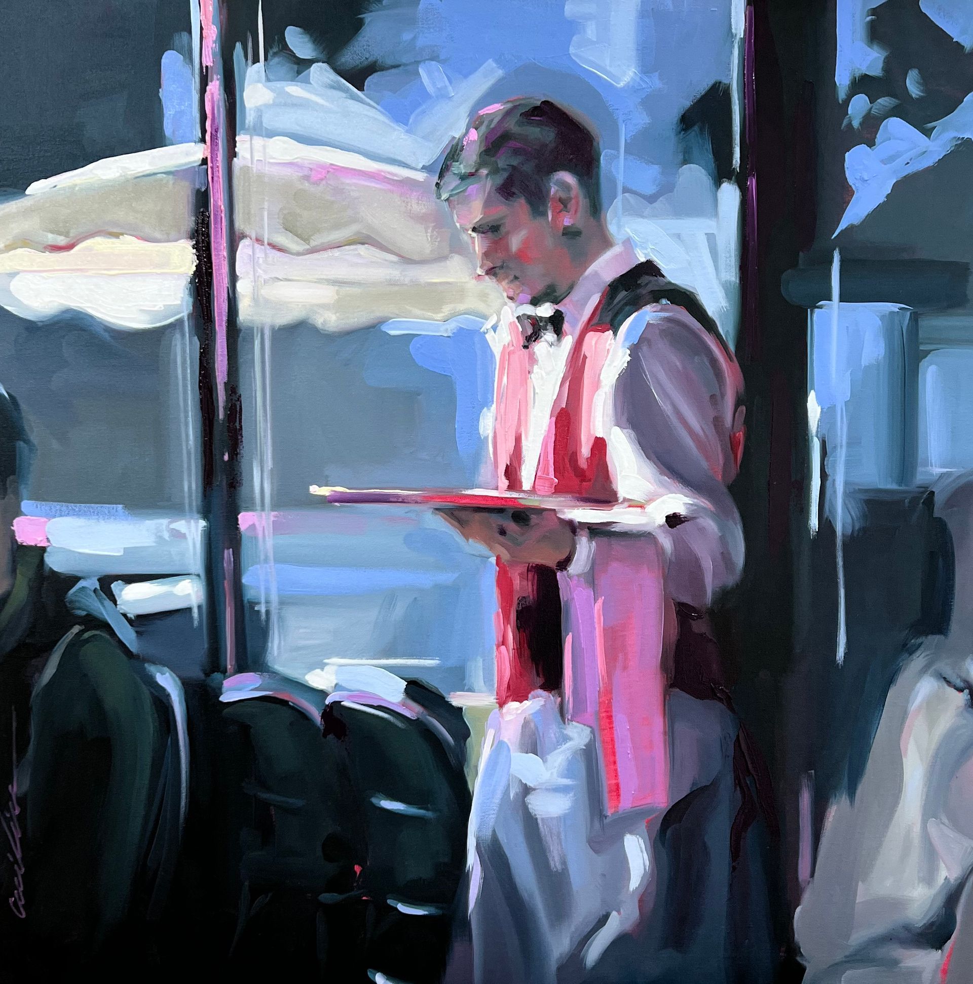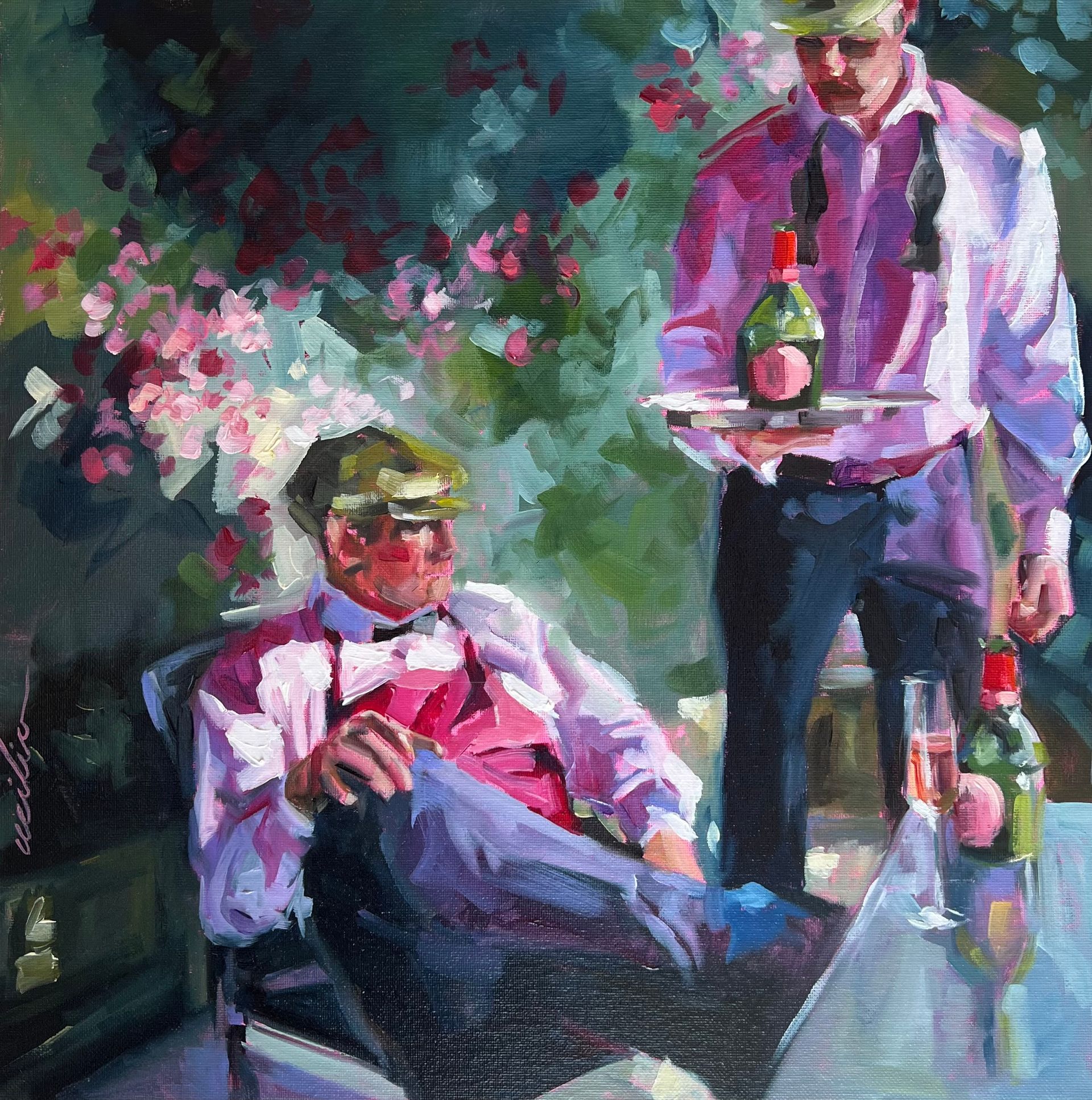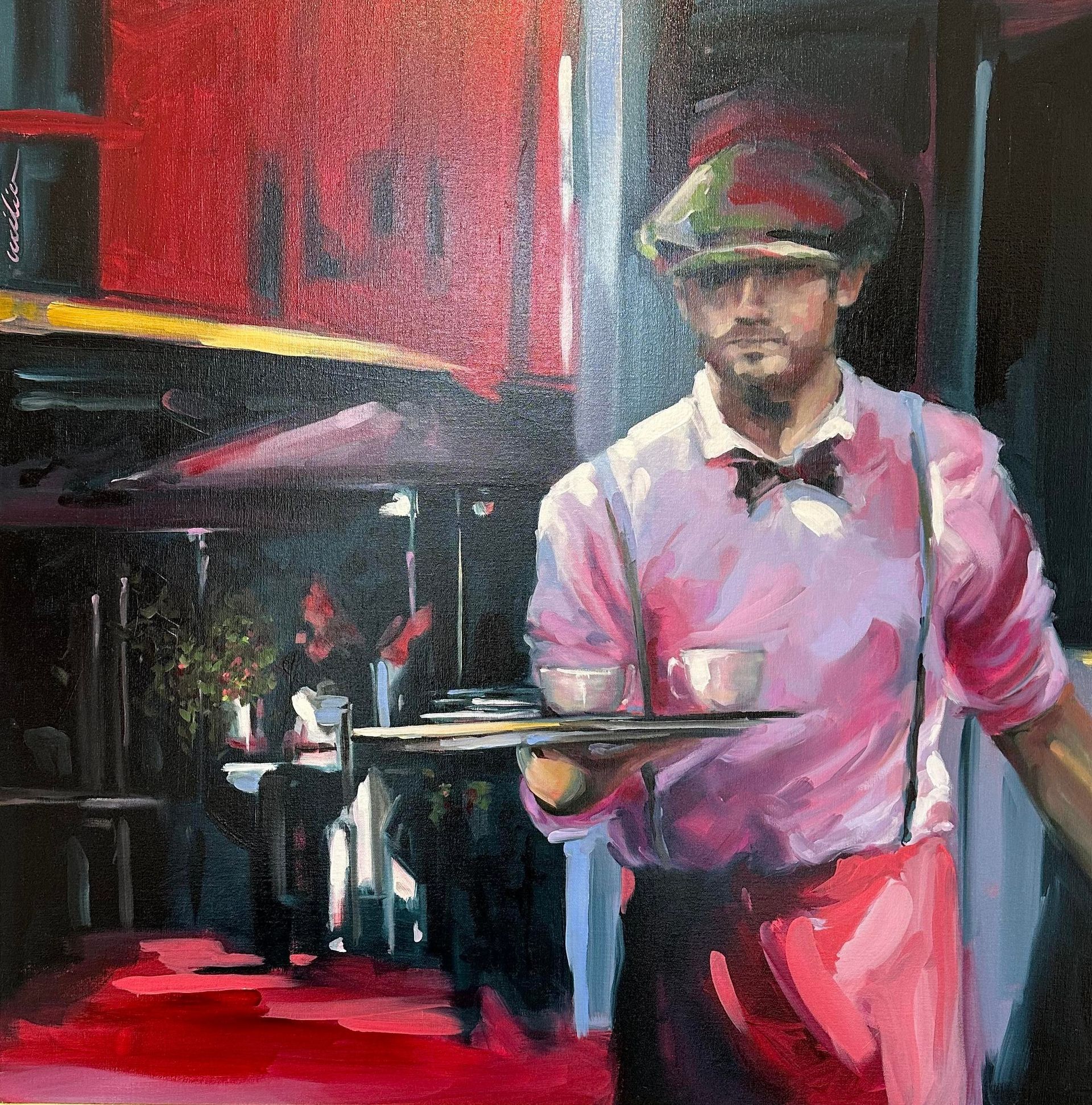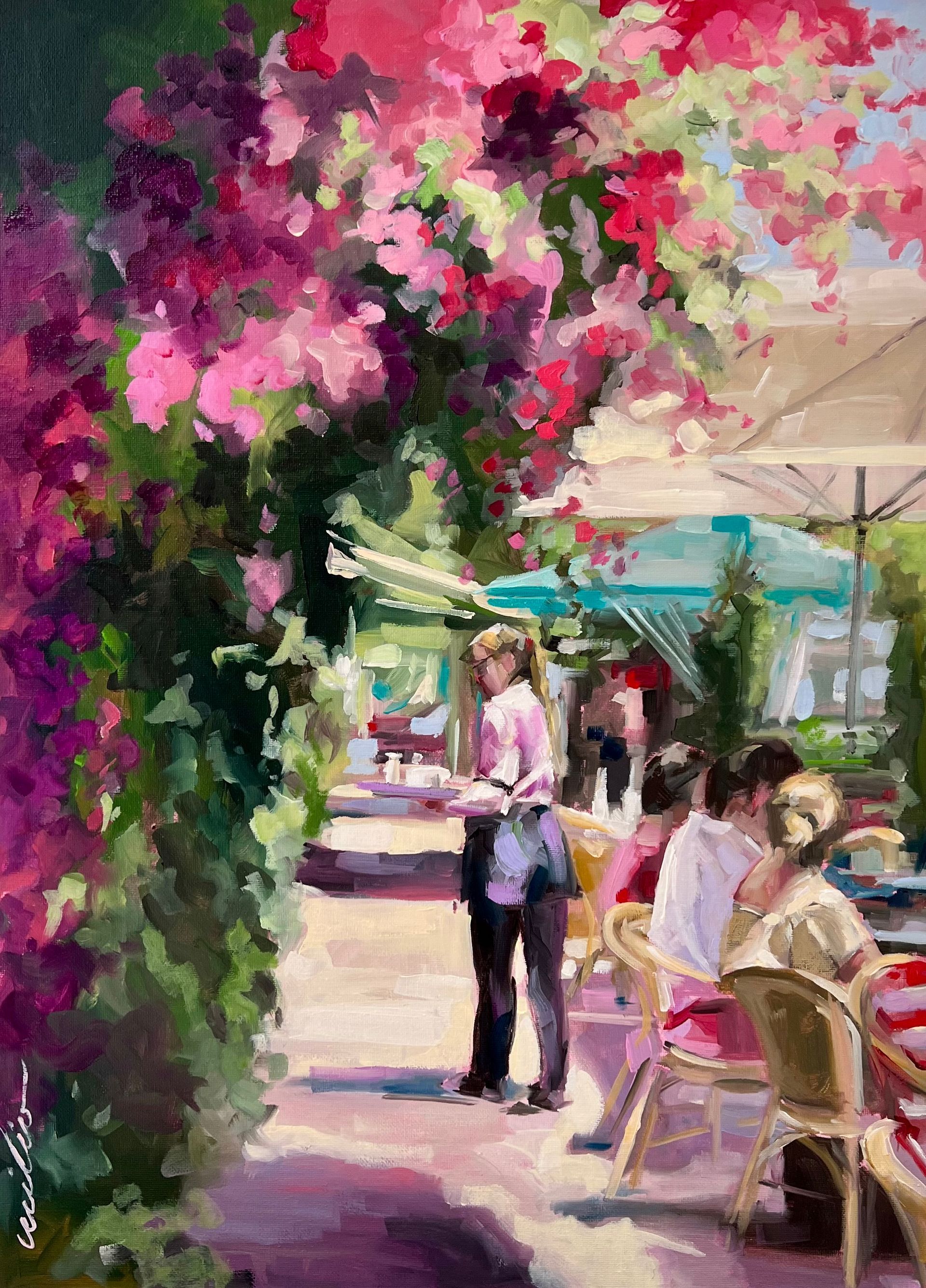 Much of the research and painting preparation for this show was achieved in Majorca (Puerto Pollensa). Hence the brightness, café life and the (holiday-type) focus on relaxing and having fun.