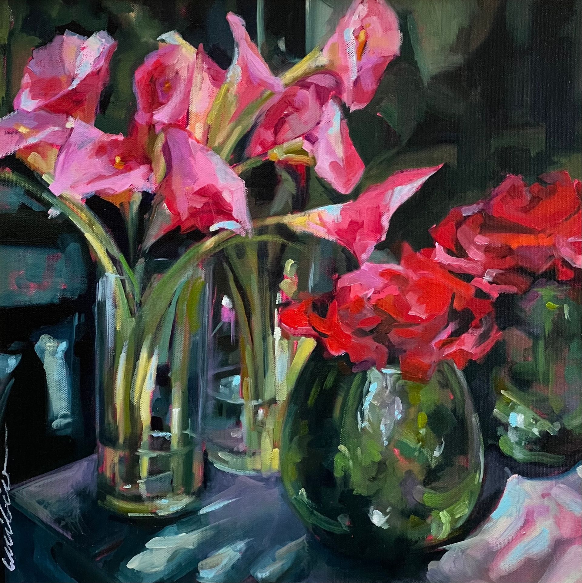 Do not underestimate the amount of pre-thought and construction that goes into achieving the right level of theatre for each of her paintings.