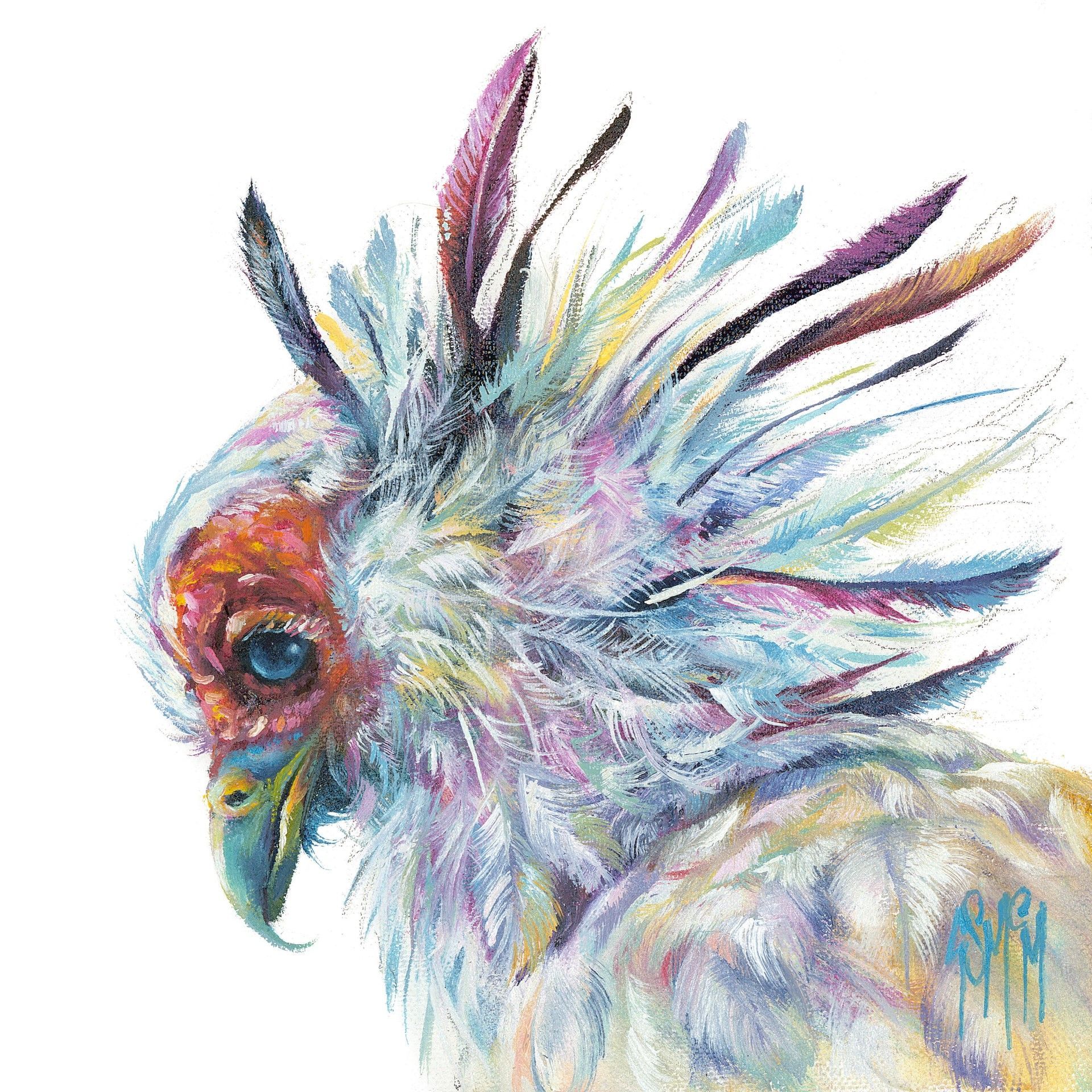Georgina very deliberately presents the animals in close-up, to allow us to study them in detail. This proximity is also designed to make the animal appear friendly and almost human. If you look at her paintings, you can get a sense of the softness of the fur or feathers on the beast and can see right into the animal’s eye, which gives it a sense of ‘soul’ and you feel that the animal is capable of ‘human-like’ emotions.